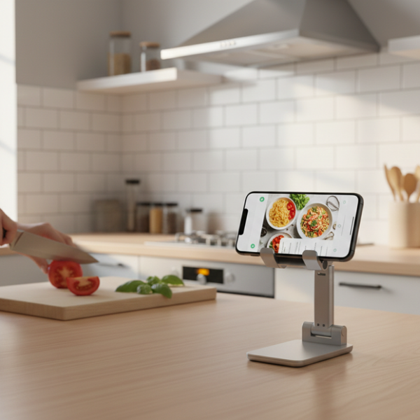 Make your life easier with our Universal Folding Mobile Stand. It is a smart and simple way to hold your phone or tablet without using your hands. Whether you are watching cooking videos in the kitchen, studying at your desk, or video calling friends, this stand holds your device perfectly so you can relax
